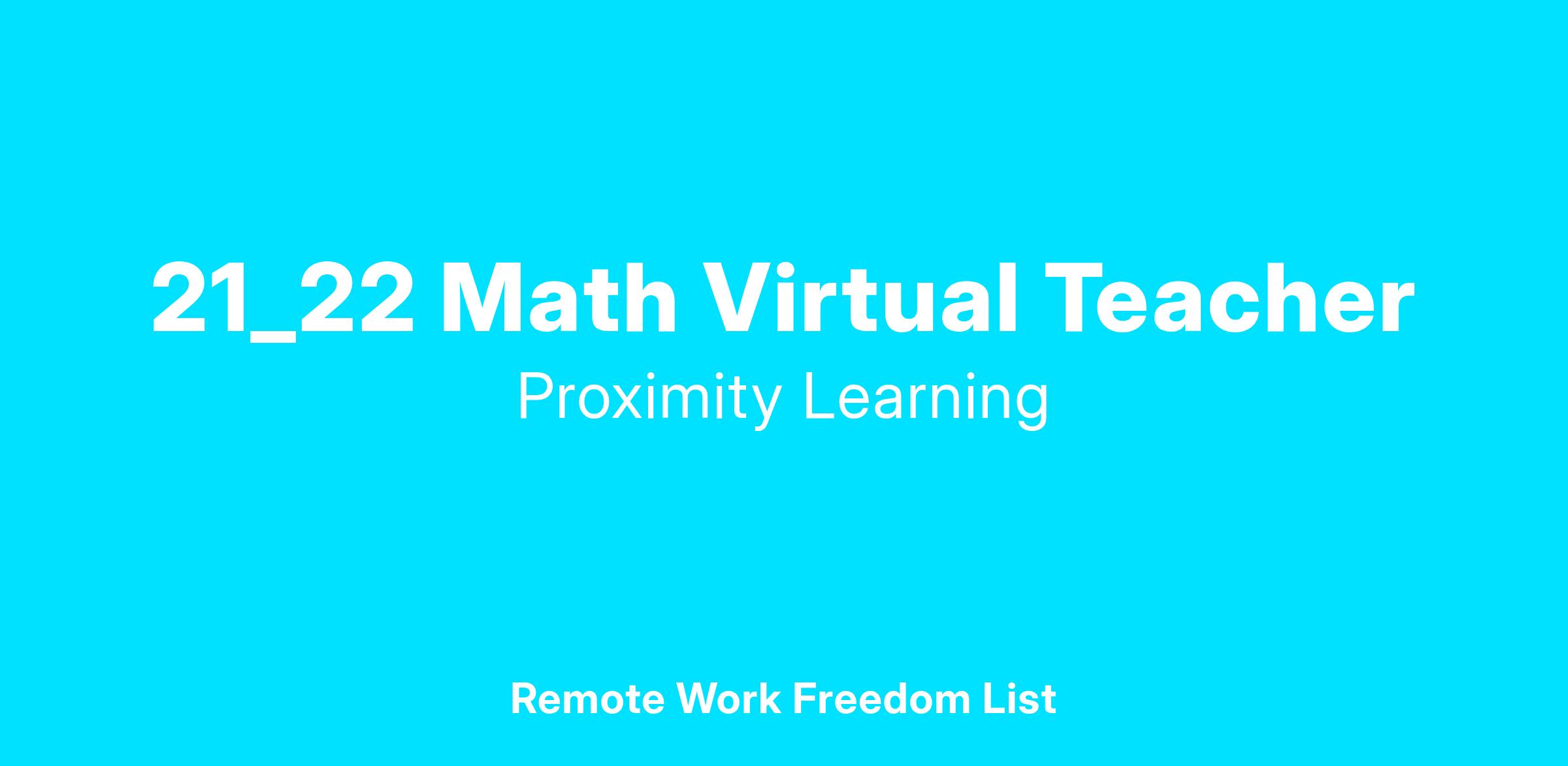 The teacher will implement an appropriate educational curriculum based on State Math Standards and the course pacing guides provided by the district. The teacher will create and maintain an educational atmosphere that encourages effective student learning. This person will report directly to the Vice Principals at Proximity Learning. Approved candidates will be placed into an active teacher pool.