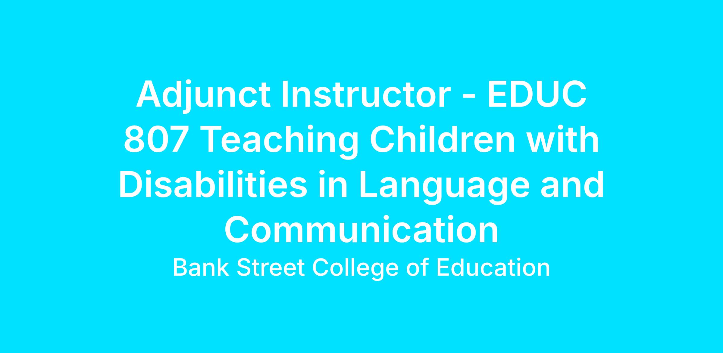 Adjunct Instructor - EDUC 807 Teaching Children with Disabilities in Language and Communication