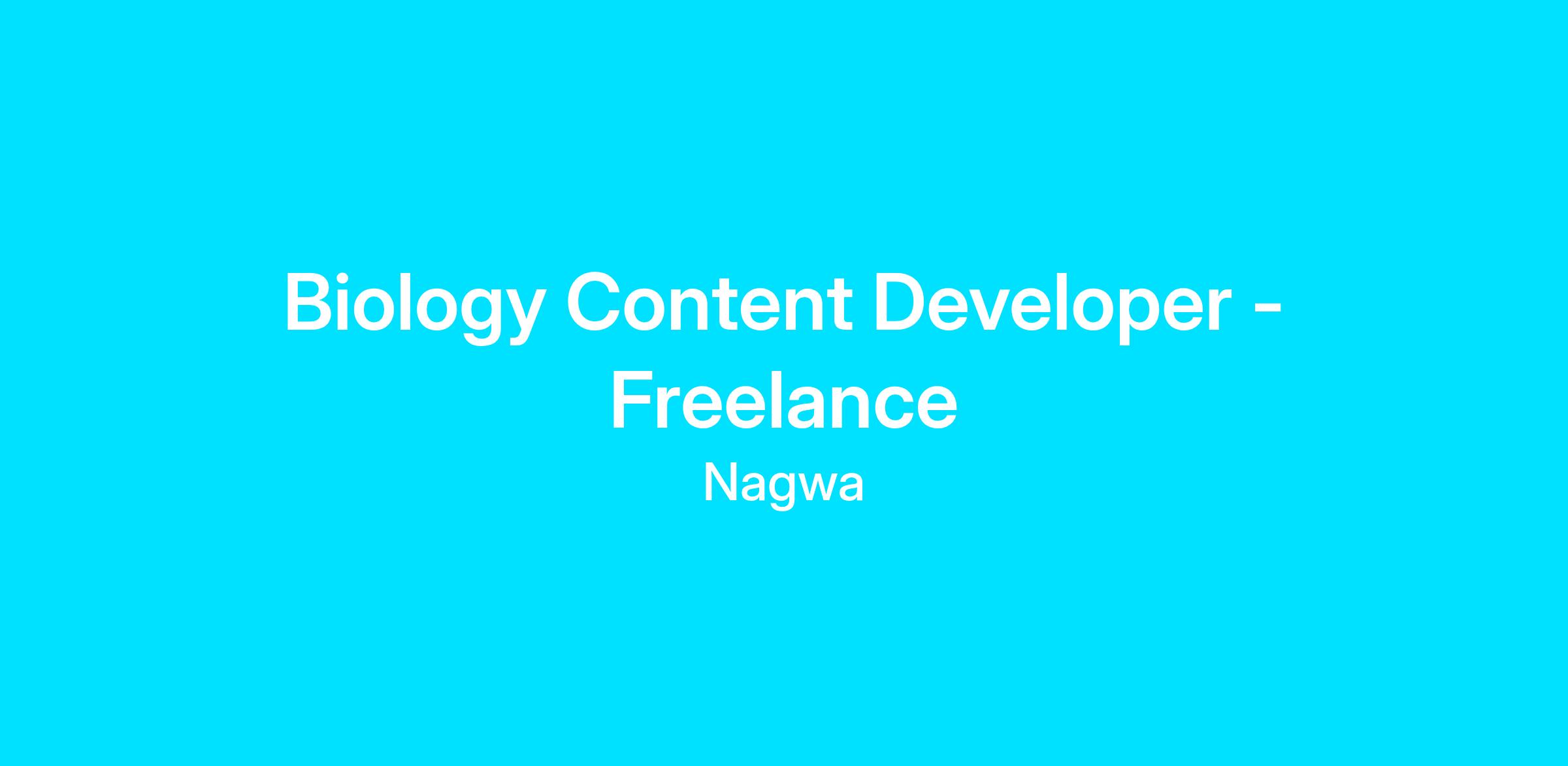 SummaryWe are looking to hire a Biology Content Developer to join us in our mission to educate the world. The successful candidate shall be responsible for integrating technology and education to create engaging online biology content with refined educational value.