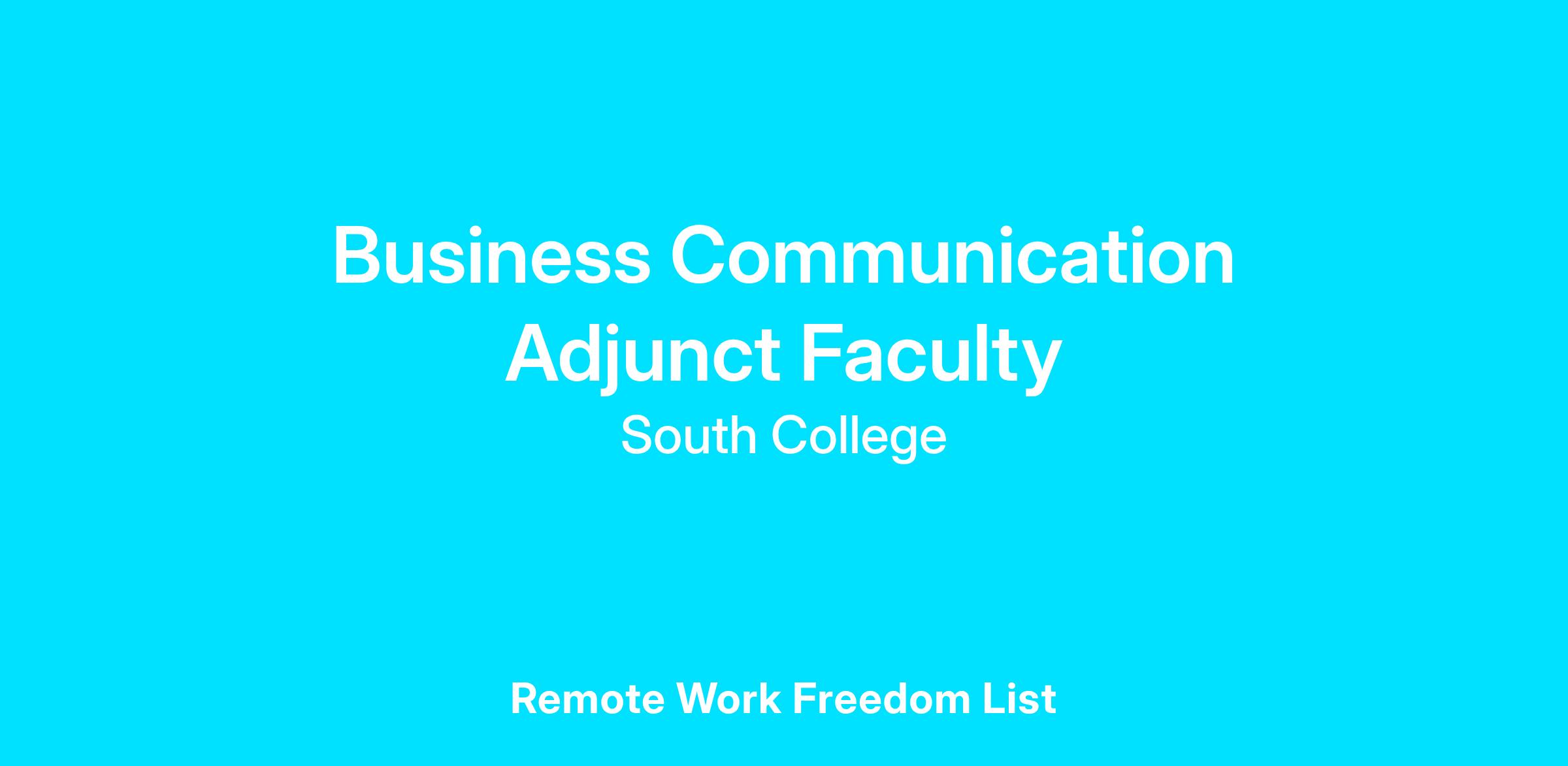 South College Online seeks candidates for an Adjunct Business Communication faculty member. Successful candidates will have a terminal degree, and preference will be given to candidates who have successfully taught Business communication in the online format.