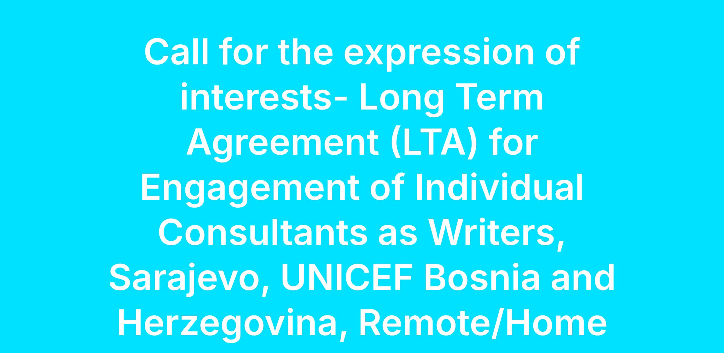 Call for the expression of interests- Long Term Agreement (LTA) for Engagement of Individual Consultants as Writers, Sarajevo, UNICEF Bosnia and Herzegovina, Remote/Home based