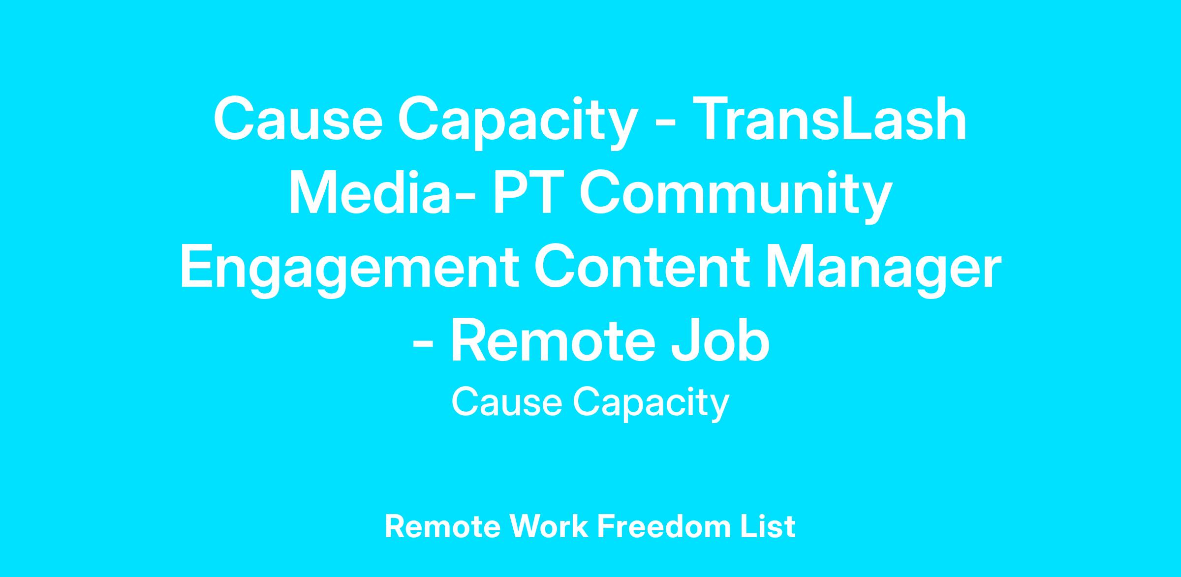 Cause Capacity - TransLash Media- PT Community Engagement Content Manager - Remote Job