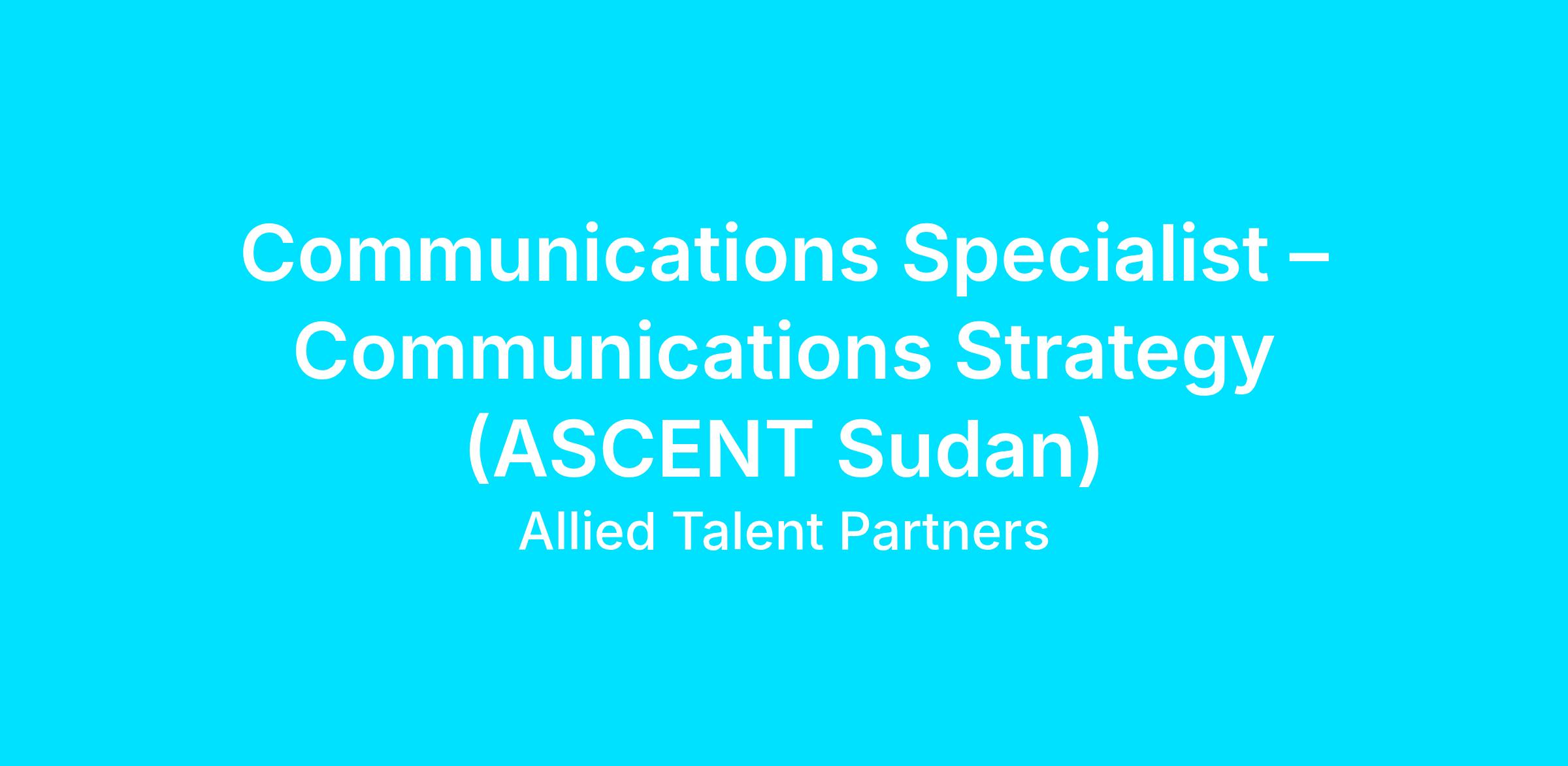 Role: Communications Specialist – Communications Strategy Development