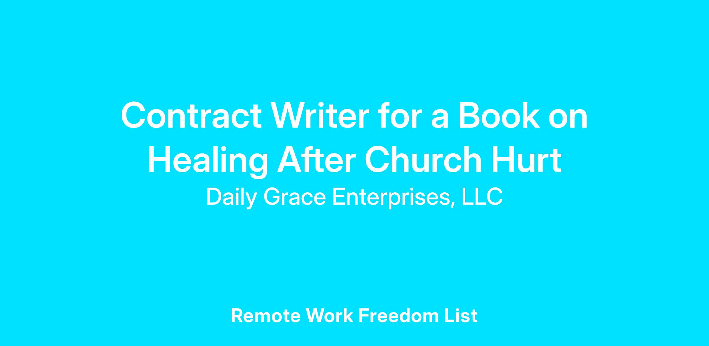 The Daily Grace Co. is seeking a contract writer for a special project: a Christ-centered book that offers biblical encouragement and hope to readers who have experienced pain or disappointment within the church. The ideal candidate will have deep theological insight, strong writing skills, and a personal understanding of how relational and spiritual wounds in the church can affect faith, trust, and daily life.