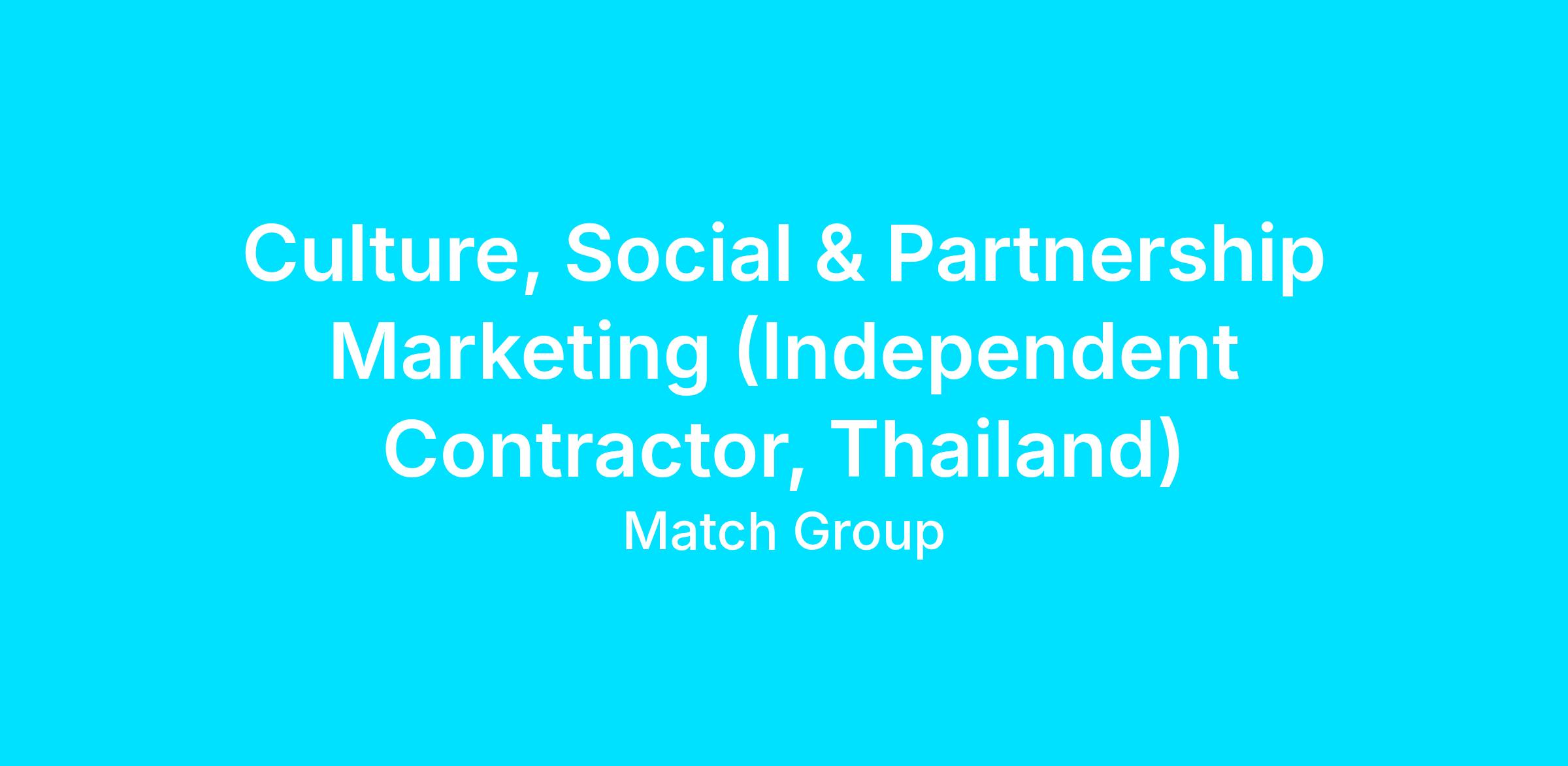 We are seeking a Culture, Social & Partnerships Contractor to collaborate with Tinder Thailand on selected marketing and partnership projects.
