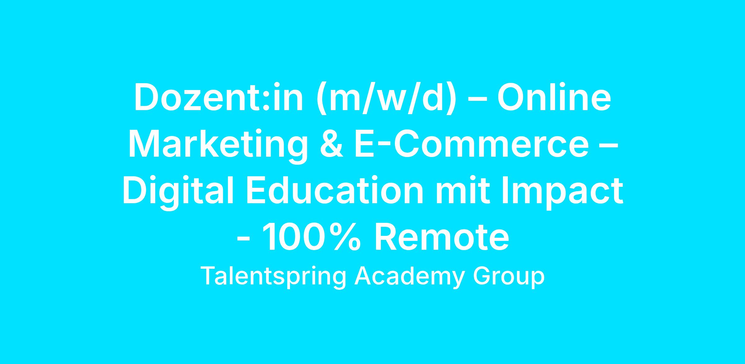 Dozent:in (m/w/d) – Online Marketing & E-Commerce – Digital Education mit Impact - 100% Remote