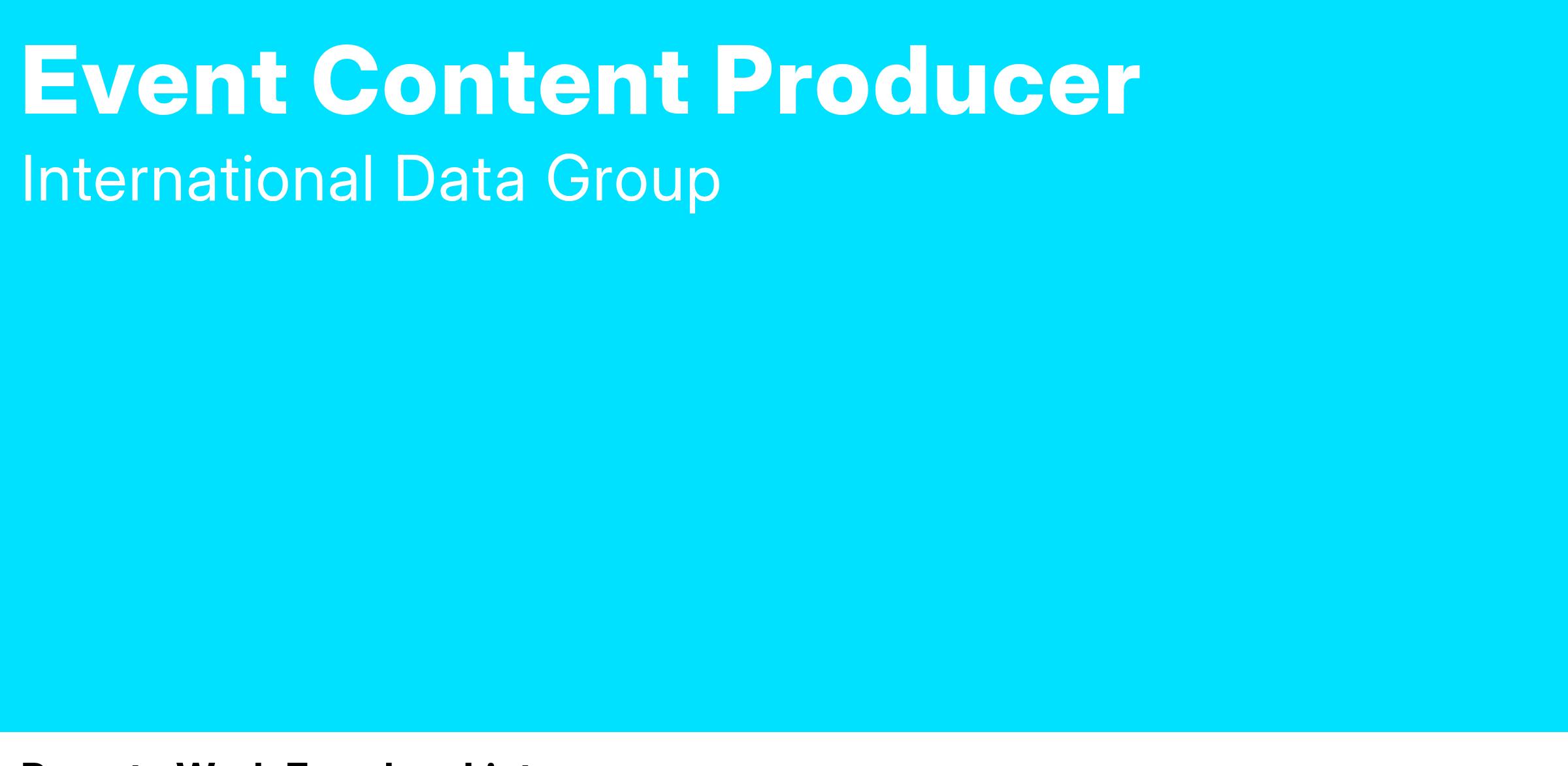 Recruitment Fraud Notice: IDG/IDC/Foundry would like to inform you that we conduct our formal communications via corporate email, our Applicant Tracking System iCIMS, LinkedIn messaging, or directly by phone. We do not use any other platform (including Telegram, WhatsApp, Signal, text, instant message, etc.) to communicate with prospective candidates. If you receive any communication outside of our formal communications channels, please ignore it and block the sender or caller. In addition, we do not ask candidates to provide sensitive personally identifiable information such as bank account or social security numbers. If you have been contacted by someone claiming to represent a job offer, please report it as potential job fraud to law enforcement.