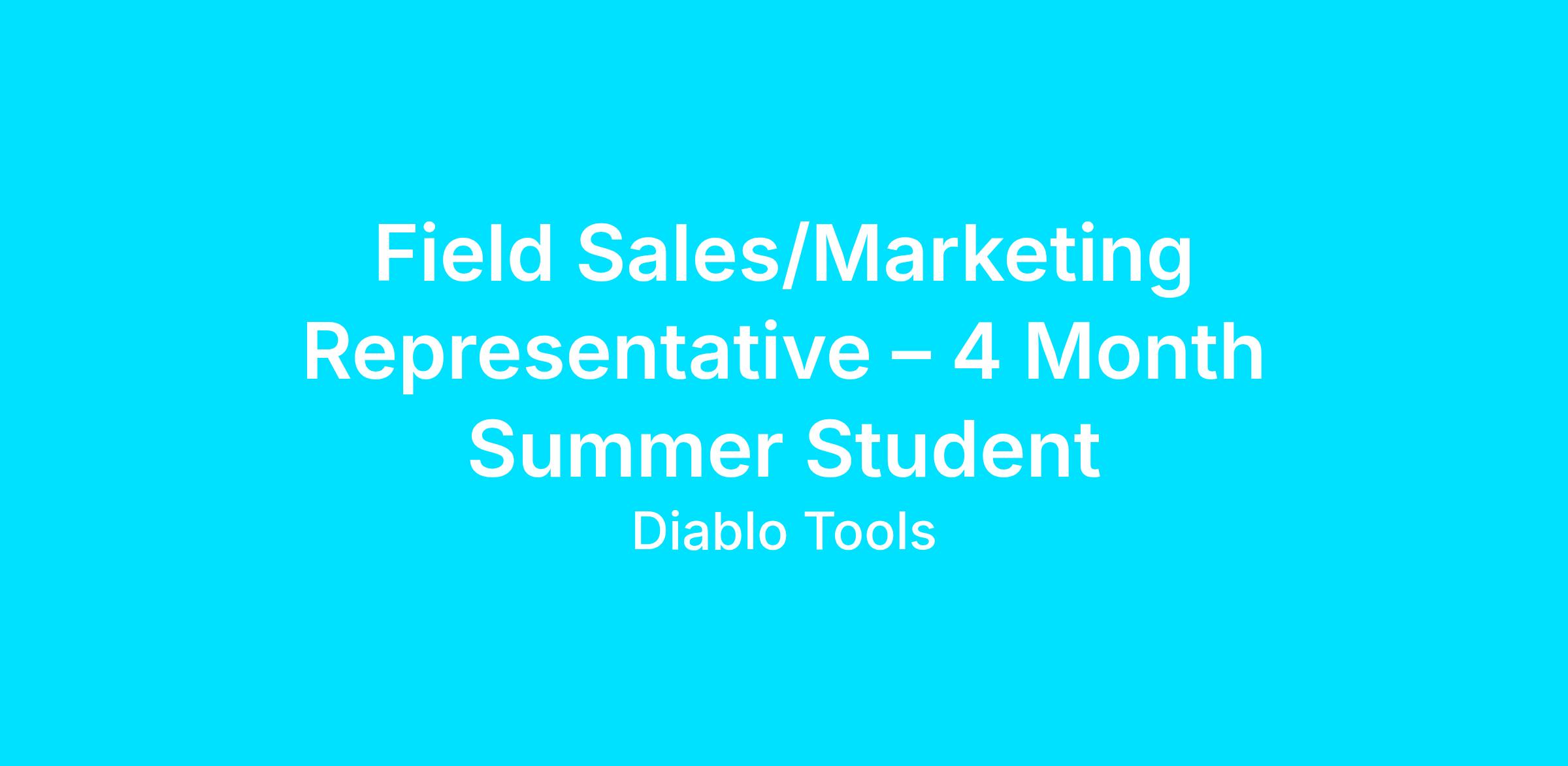 Diablo is seeking strong work ethic, self-motivated, undergraduates for Field Sales/Marketing Representatives. Individual will be responsible for driving sales of Diablo products through product demonstrations, end-user interaction and in-store merchandising at key accounts. The position will report directly to an Account Manager and will have responsibility for an assigned geographical territory.