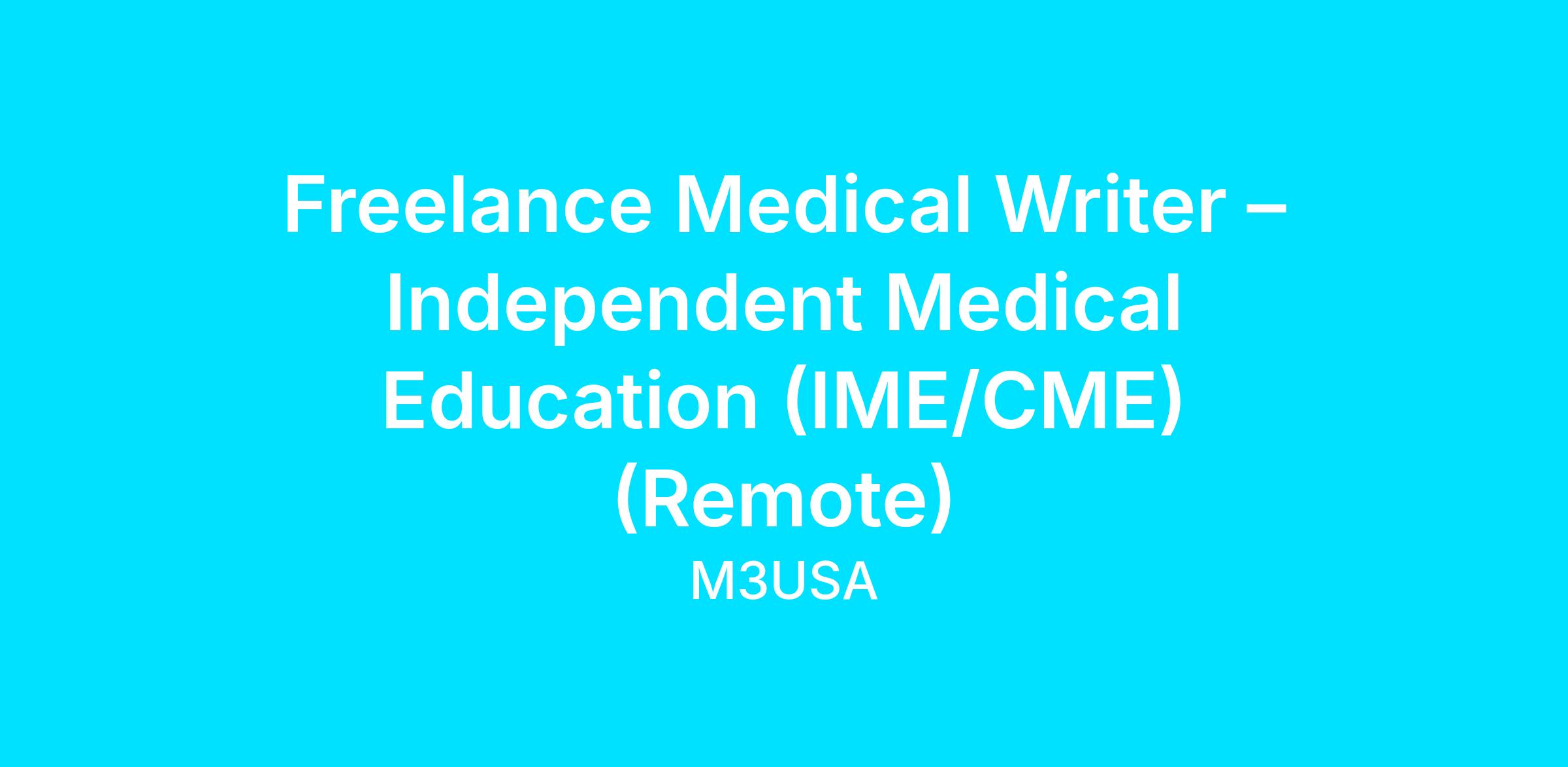 M3 IME is seeking a Medical Writer with a background in Independent Medical Education (IME/CME) to support the development of evidence-based, fair-balanced educational content for healthcare