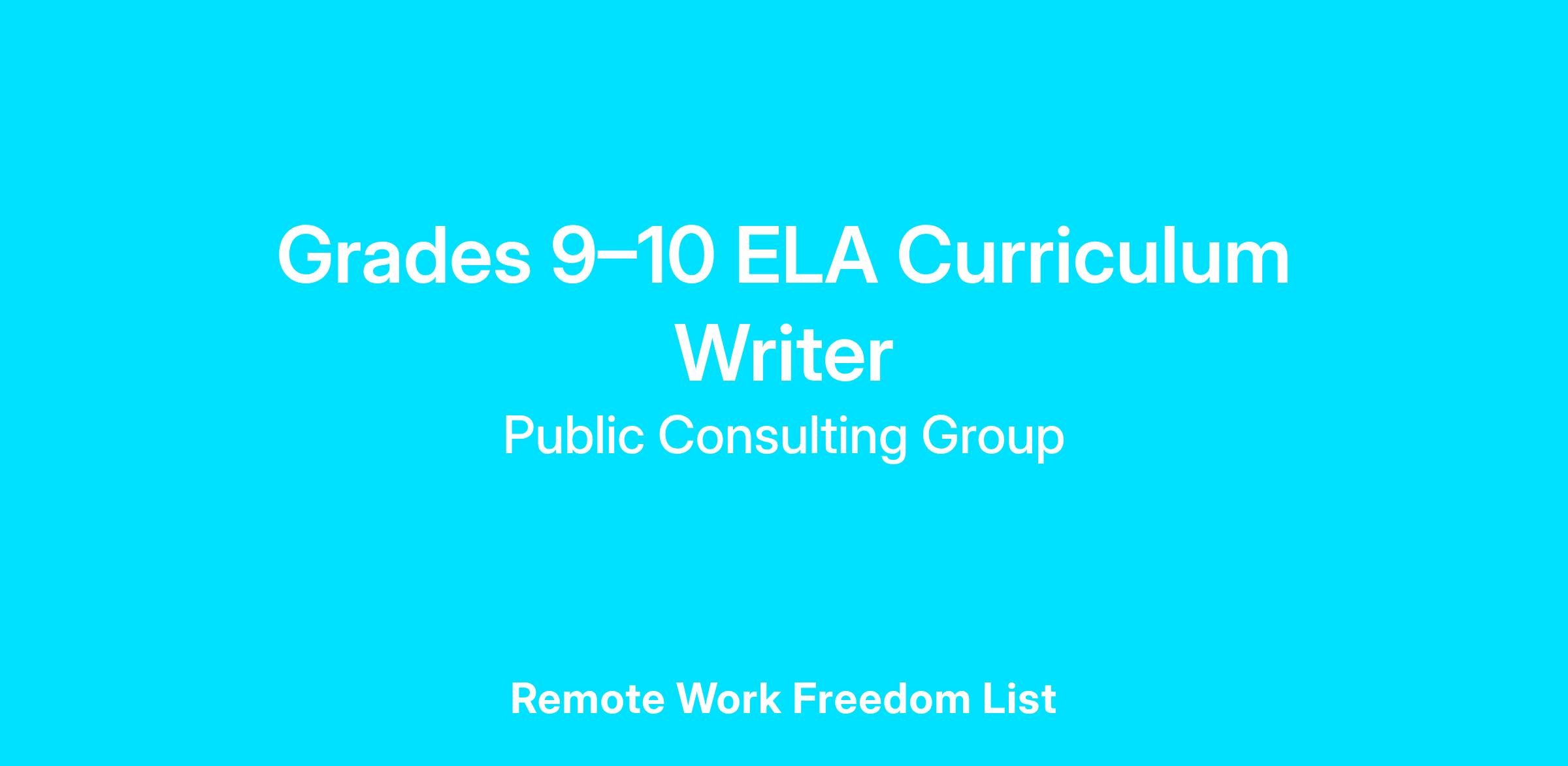 Position Title: Grades 9–10 ELA Curriculum Writer