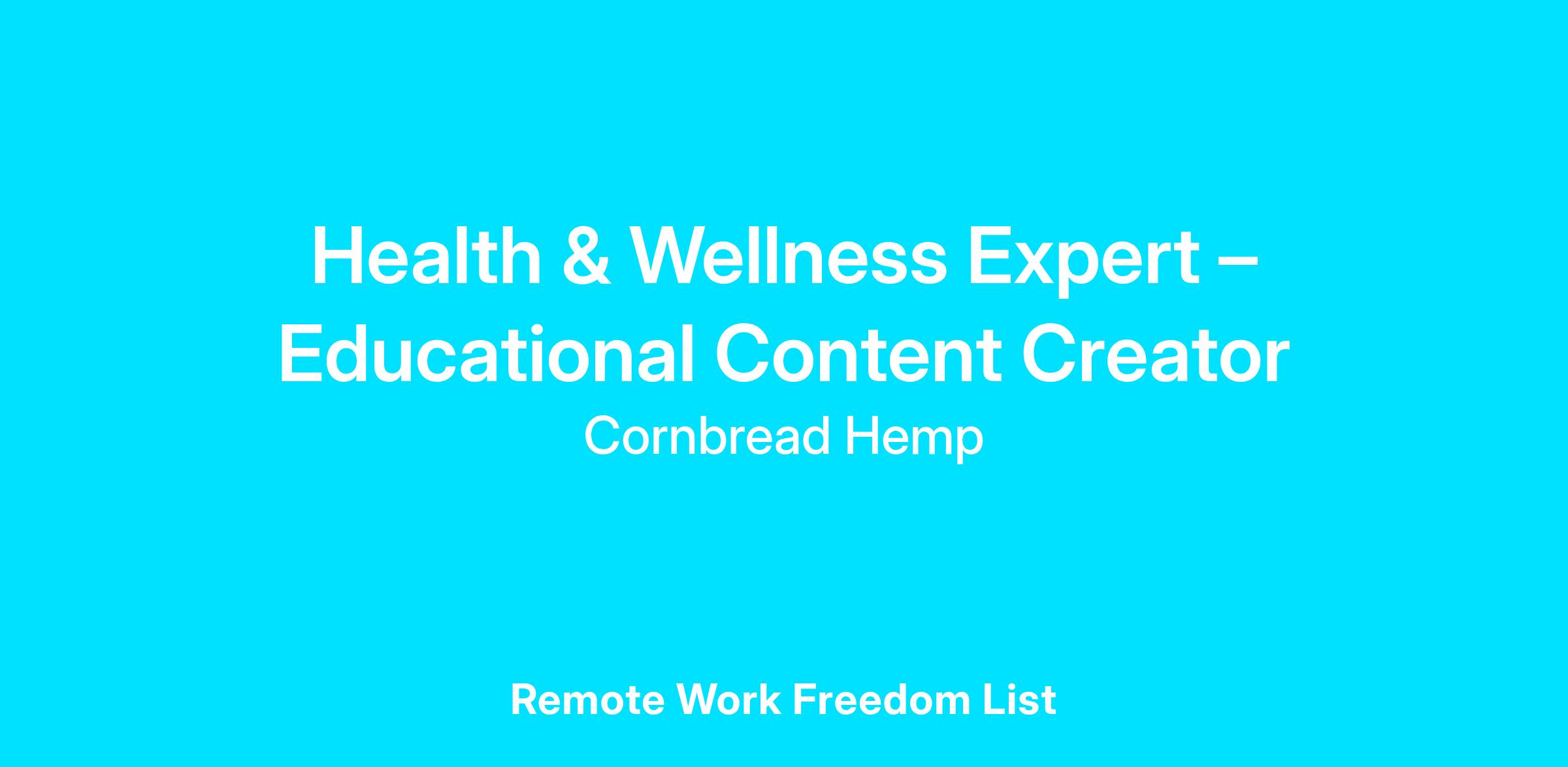 Cornbread Hemp is a leader in hemp wellness products. We are dedicated to helping people improve their quality of life naturally. To further our mission, we are seeking a Health & Wellness Expert to create educational, trustworthy, and engaging content that drives sales and empowers our community to live better.