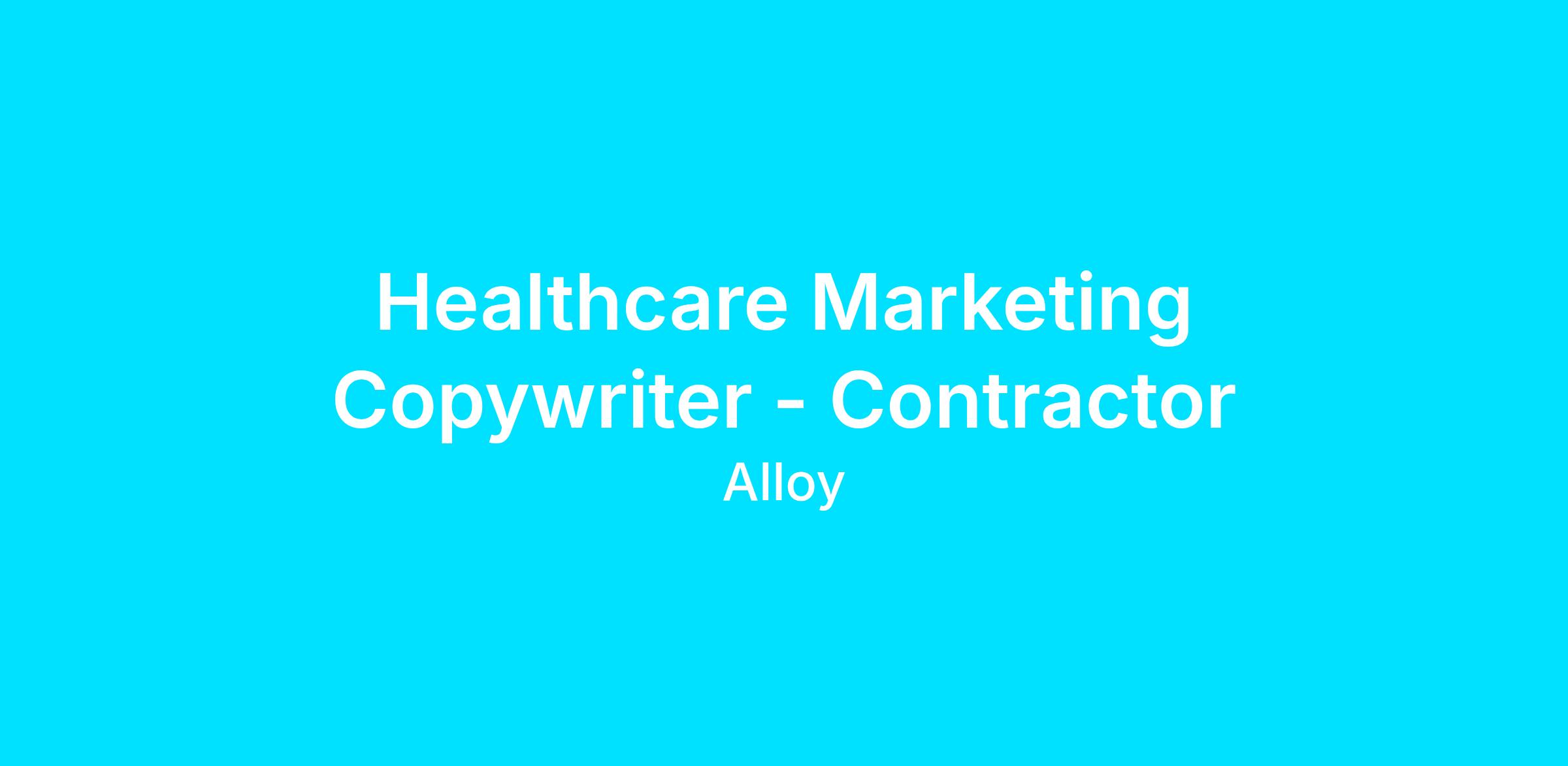 Alloy is seeking experienced, strategic Contract Healthcare Marketing Copywriters to join our freelance creative bench. We are looking for seasoned pros who can jump into active projects and deliver high-impact copy for our diverse portfolio of healthcare and hospital system clients on an as-needed basis.