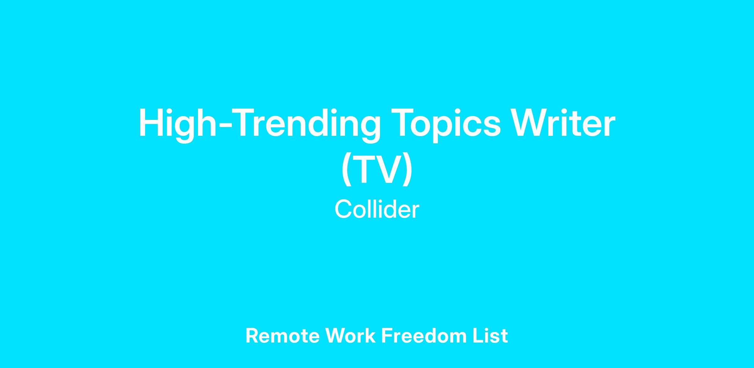 We’re looking for driven and insightful freelance writers who can create timely, high-performing pieces around trending film and TV topics. This role is not just about producing content, it’s about directly driving traffic and audience engagement. The success of your articles contributes directly to the success of the brand, and your earnings scale accordingly. The more views your content generates, the more commensurate your payment becomes.