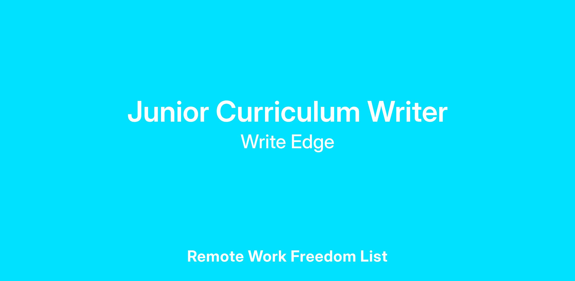 Are you passionate about shaping young minds and creating impactful learning experiences? As a Remote Junior Curriculum Writer at Write Edge, you will play a vital role in crafting dynamic and engaging lessons that inspire student growth.