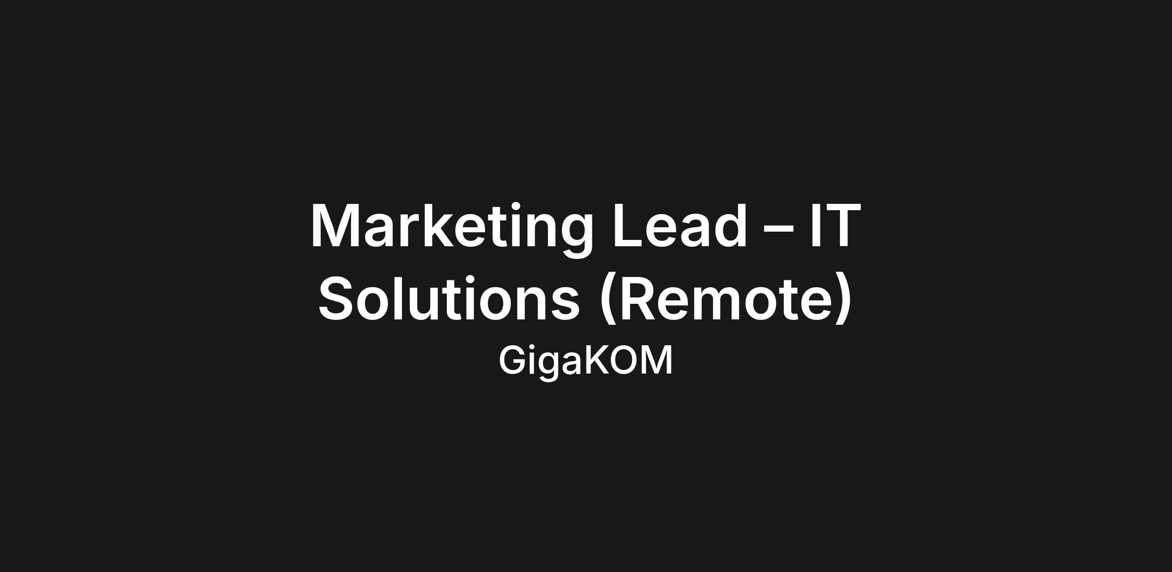 Marketing Lead – IT Solutions (Remote – California)