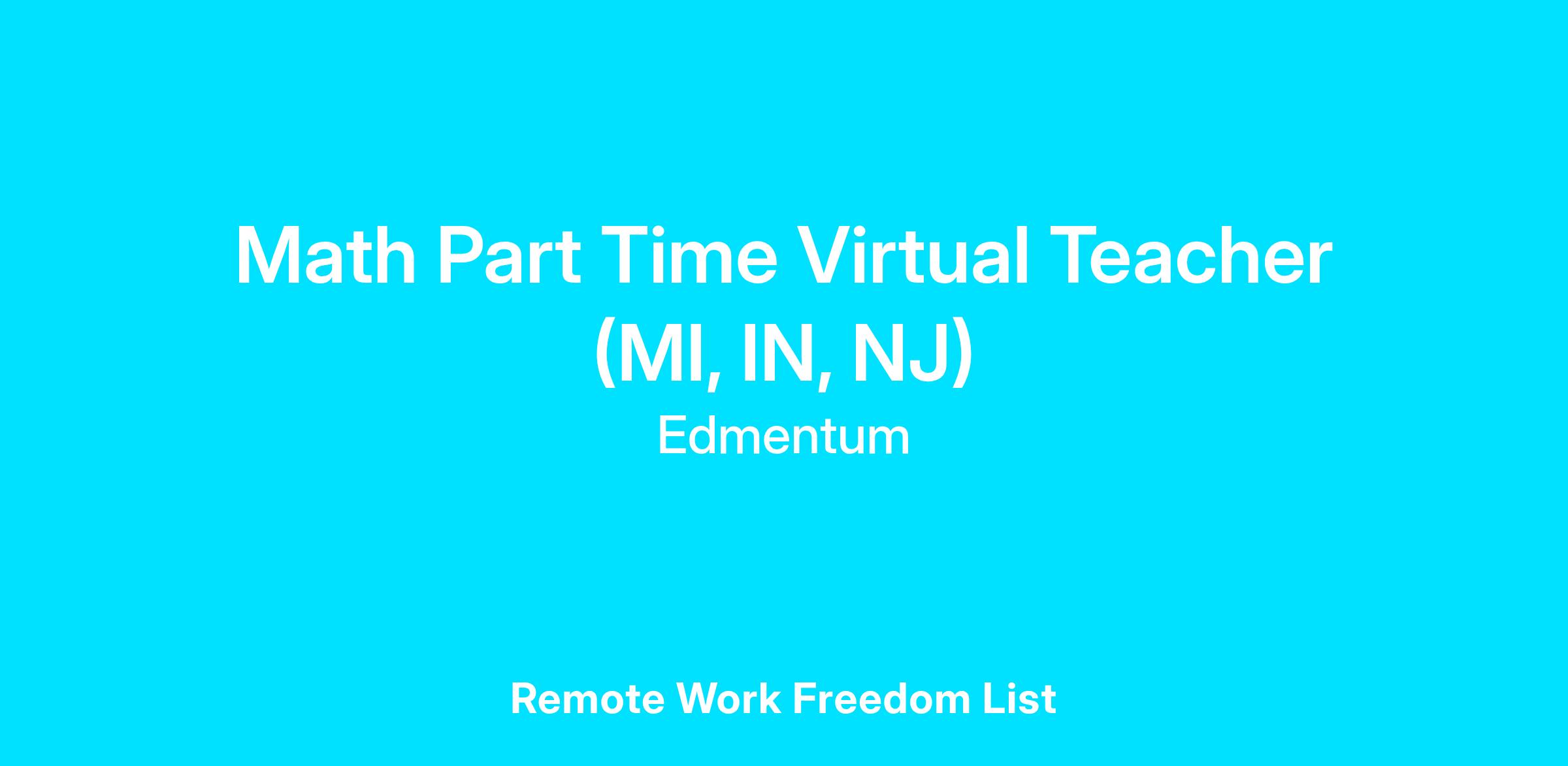 We are seeking a Part Time Virtual Teacher certified to teach Mathematics. You must possess a valid teaching certificate in Mathematics grades 6-12 to apply.