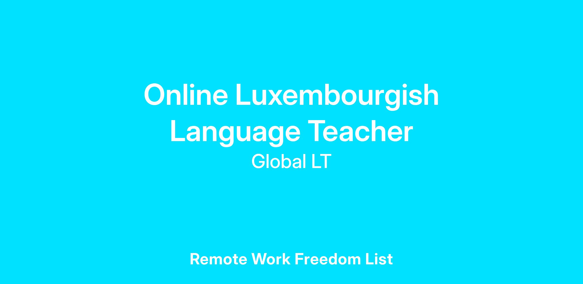 Join the Global LT community and help provide language lessons to business professionals and their families worldwide. We are currently looking for a Luxembourgish Language Teacher to provide customized lessons to our clients online.