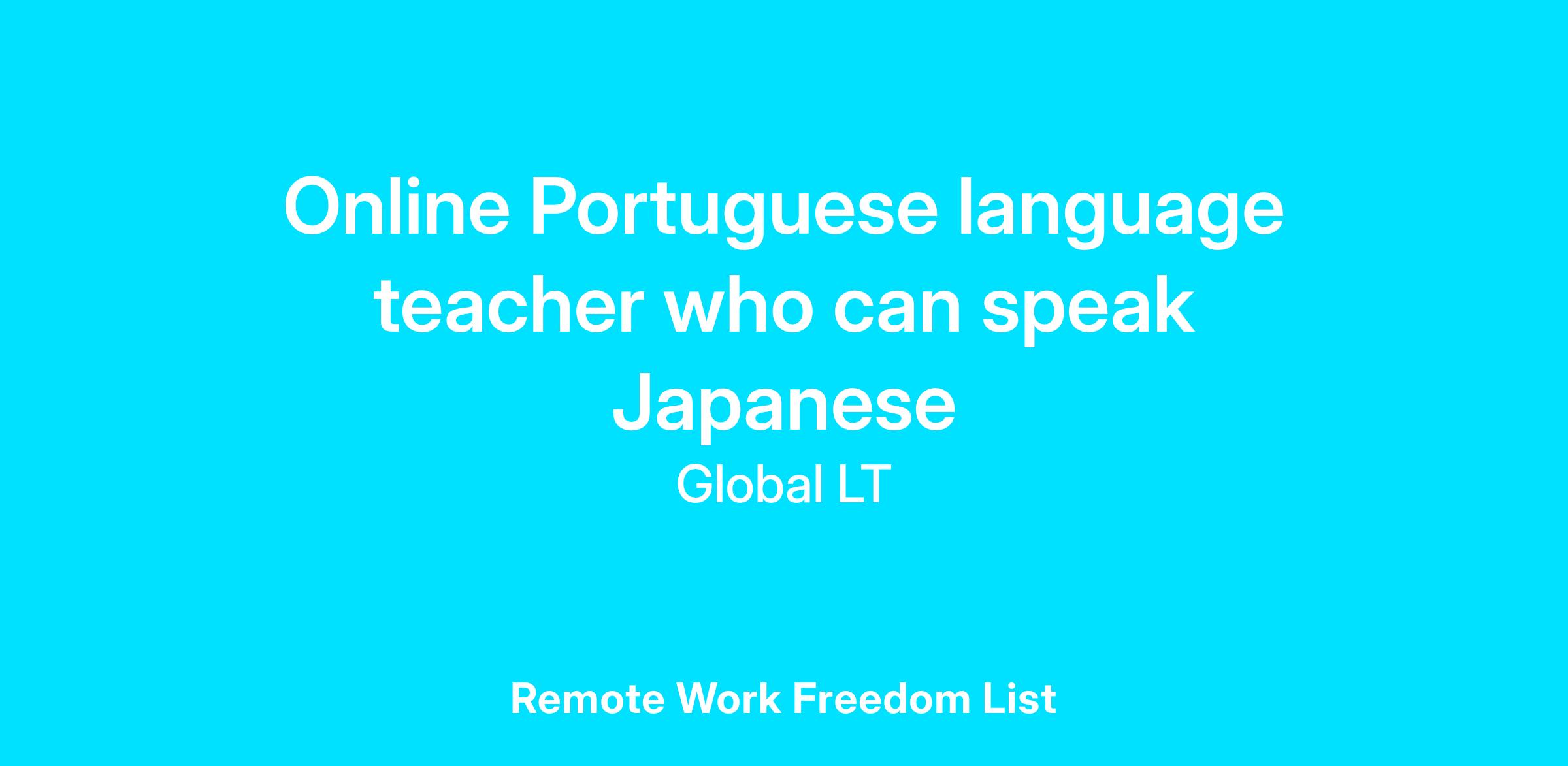 Join the Global LT community and help provide language lessons to business professionals and their families worldwide. We are hiring an Online Portuguese language teacher who can speak Japanese to provide customized online lessons to these clients.