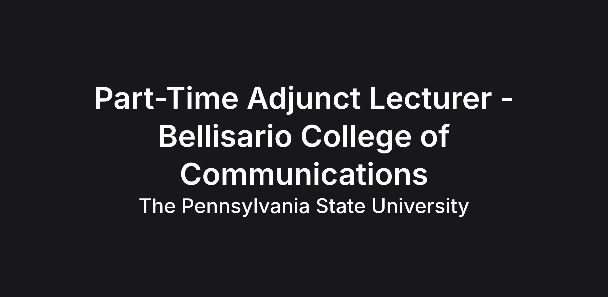 The Donald P. Bellisario College of Communications seeks to hire various academic positions for the 2026/2027 academic year. These appointments will be part-time, non-tenure track appointments without benefits and no guarantee of renewal.