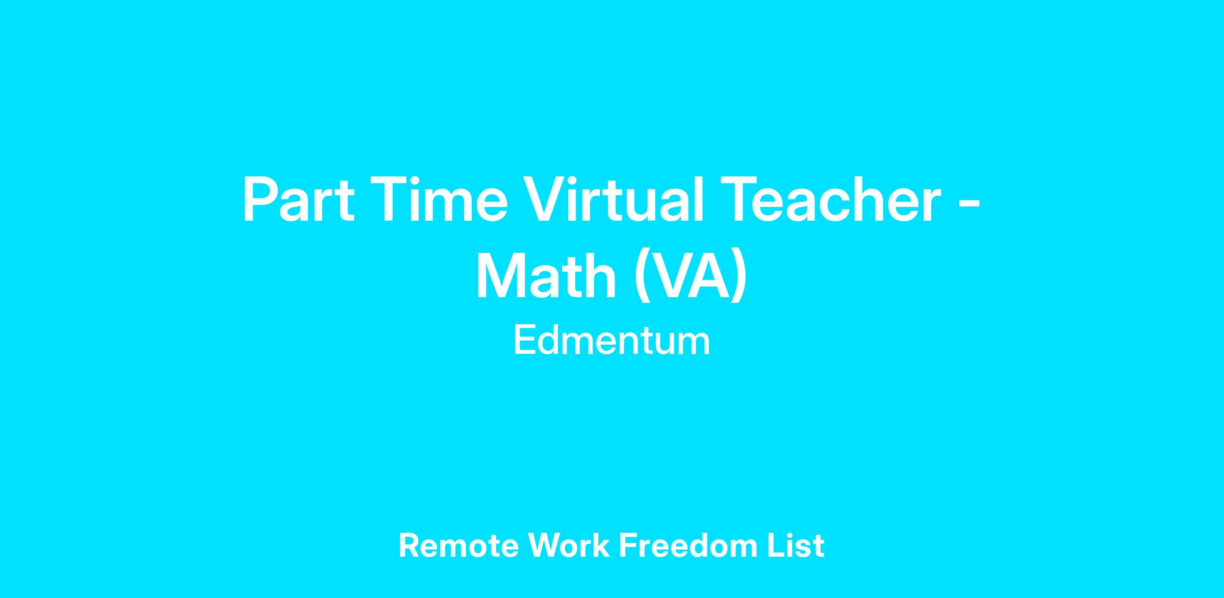 We are seeking a Part Time Virtual Teacher certified to teach Mathematics, specifically Algebra I. You must possess a valid teaching certificate in Virginia Mathematics to apply.