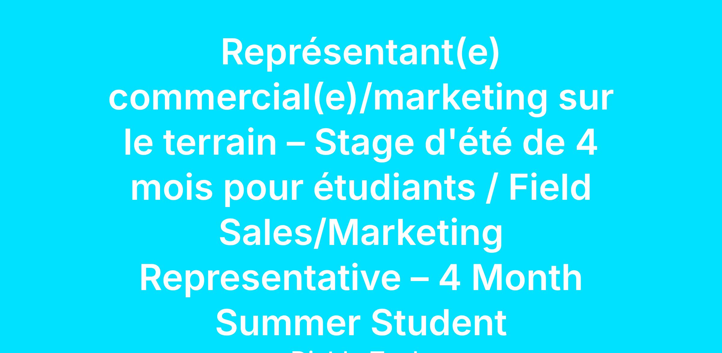 Ce poste est une excellente expérience pour les étudiants qui veulent démarrer leur carrière dans le monde de commerce par les ventes aux clients, le marketing et le service à la clientèle.