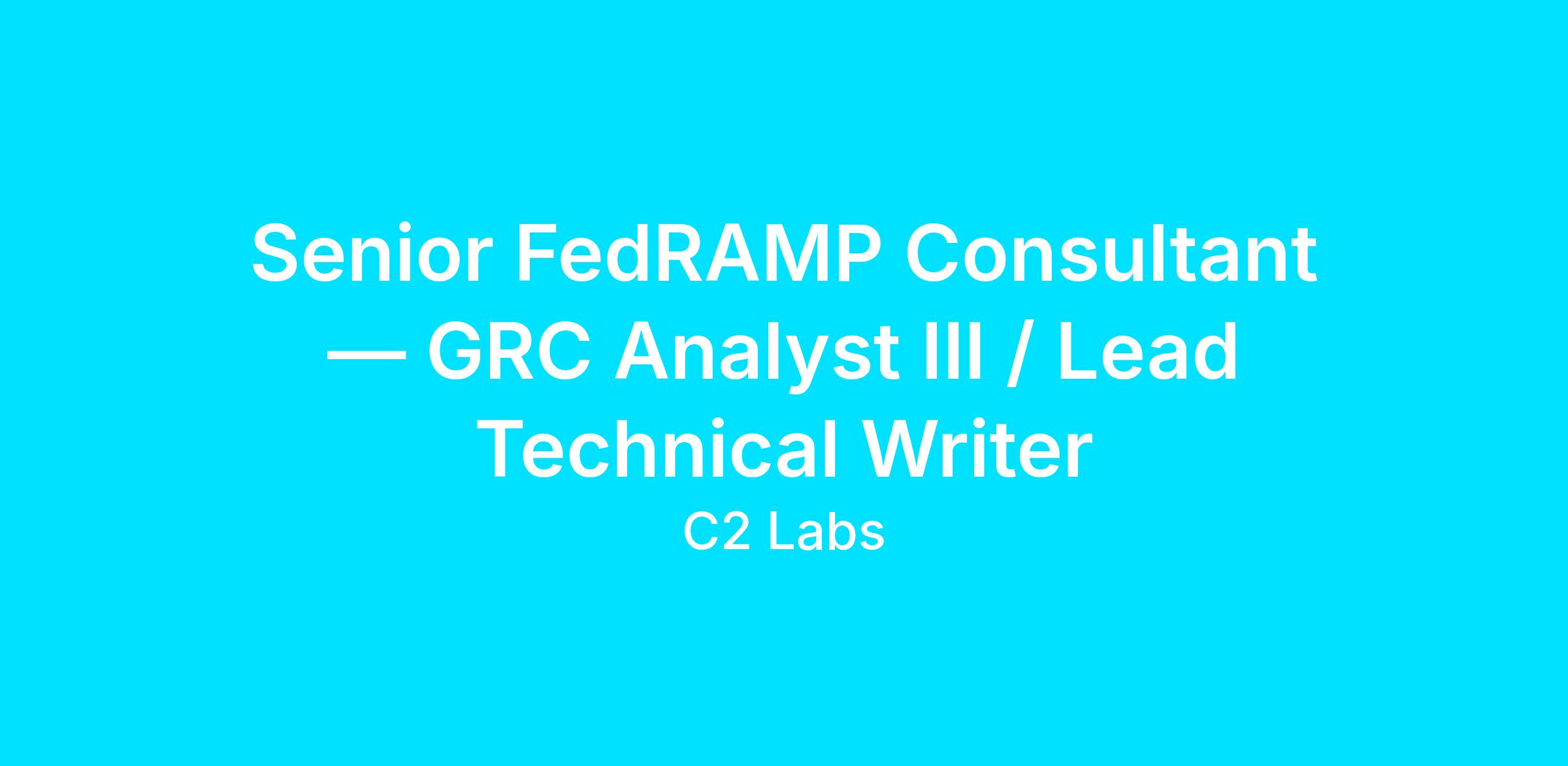 C2 Labs is hiring a Senior FedRAMP Consultant (GRC Analyst III equivalent) to act as a lead technical writer for FedRAMP authorization packages and ongoing ConMon operations. If you can translate real-world cloud security implementations into crisp FedRAMP documentation—and you care about making ConMon sustainable—this is a strong fit.
