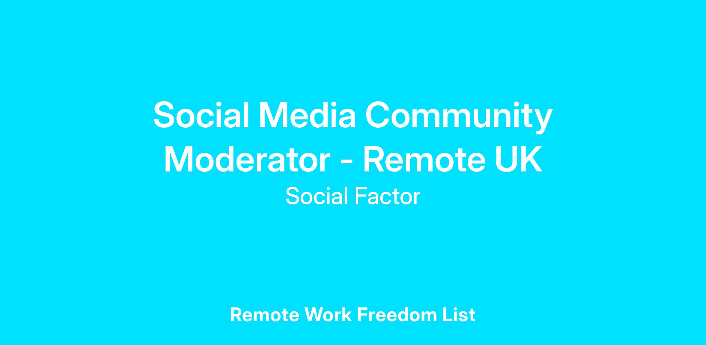 All qualified applicants will be asked to complete a Community Moderation assessment upon initial screening. The purpose of this assessment provides us with a greater understanding of our community management approach and allows us to better understand your level of comprehension. Completion and passing the assessment is a requirement to work at Social Factor in this role but does not guarantee employment at any time.