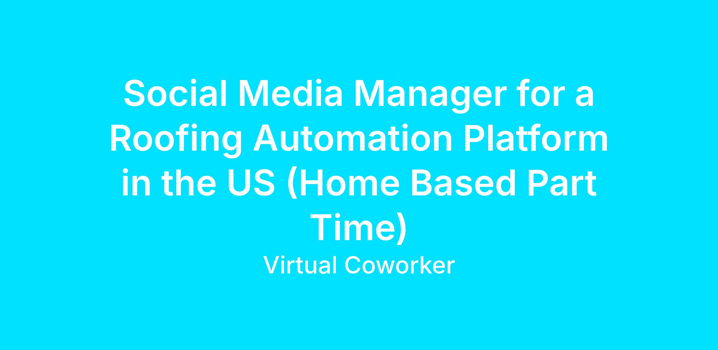 https:\/\/www.linkedin.com\/company\/virtual\-coworker"}],"isMobile":false,"iframe":"true","jobType":"Part time","applyName":"Apply Now!","zsoid":"8208015","FontFamily":"Arial, Helvetica, sans\-serif","jobOtherDetails":[{"fieldLabel":"Job Category","uitype":2,"value":"Social Media Management"},{"fieldLabel":"Work Schedule","uitype":1,"value":"Monday \- Friday; Between 5:00 am \- 9:00 pm Central Standard Time"},{"fieldLabel":"Hours Per Day","uitype":2,"value":"Part Time â 4 hours per day"},{"fieldLabel":"Industry","uitype":2,"value":"Technology"},{"fieldLabel":"Client Location","uitype":2,"value":"USA"},{"fieldLabel":"Work Location","uitype":1,"value":"Home Based \- Philippines"},{"fieldLabel":"City","uitype":1,"value":"Nashville"},{"fieldLabel":"State\/Province","uitype":1,"value":"Tennessee"},{"fieldLabel":"Zip\/Postal Code","uitype":1,"value":"37203"}],"headerName":"Social Media Manager for a Roofing Automation Platform in the US (Home Based Part Time)","widgetId":"147741000000390320","isJobBoard":"false","userId":"147741000000027001","attachArr":[],"customTemplate":"3","isCandidateLoginEnabled":true,"jobId":"147741000071498804","FontSize":"12","location":"Nashville","embedsource":"CareerSite","logoId":"idwop0ece2fcac21a443ba16938fb832bdc3b"}