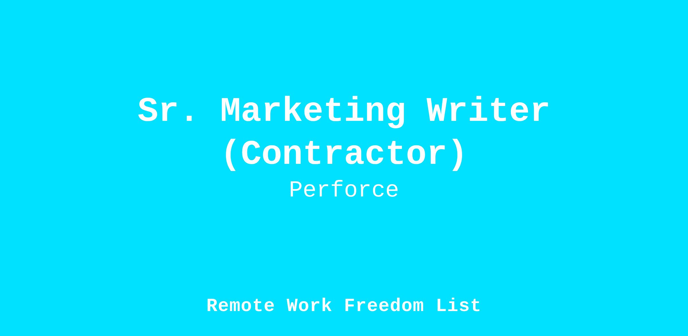 The Perforce marketing team has a highly-skilled and tight-knit community of writers that you will learn and benefit from in this role. Those with a passion and curiosity for developing data-driven content strategy will have several opportunities to learn and grow with our dynamic and experienced marketing team.