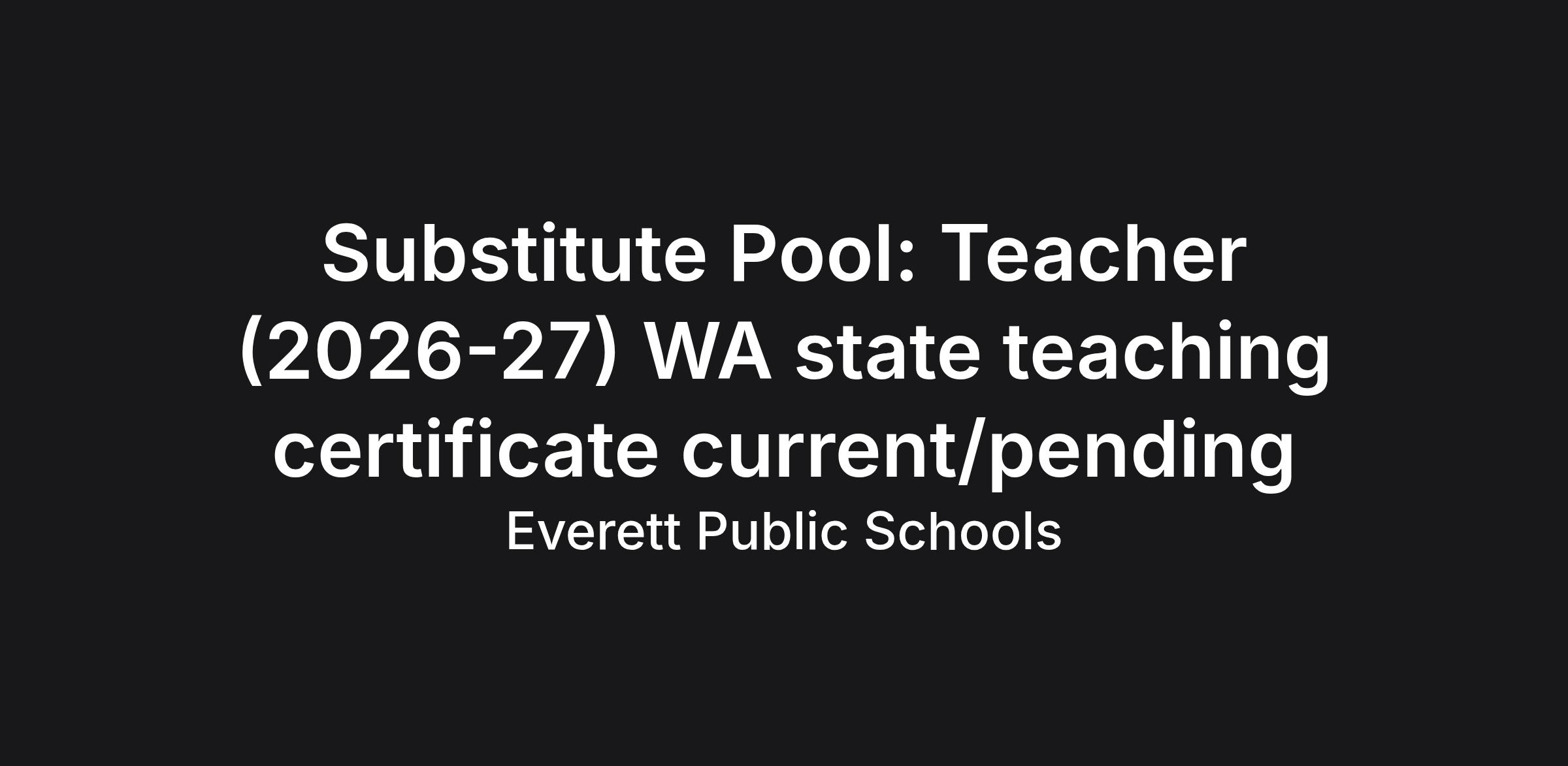 Substitute Pool: Teacher (2026-27) WA state teaching certificate current/pending