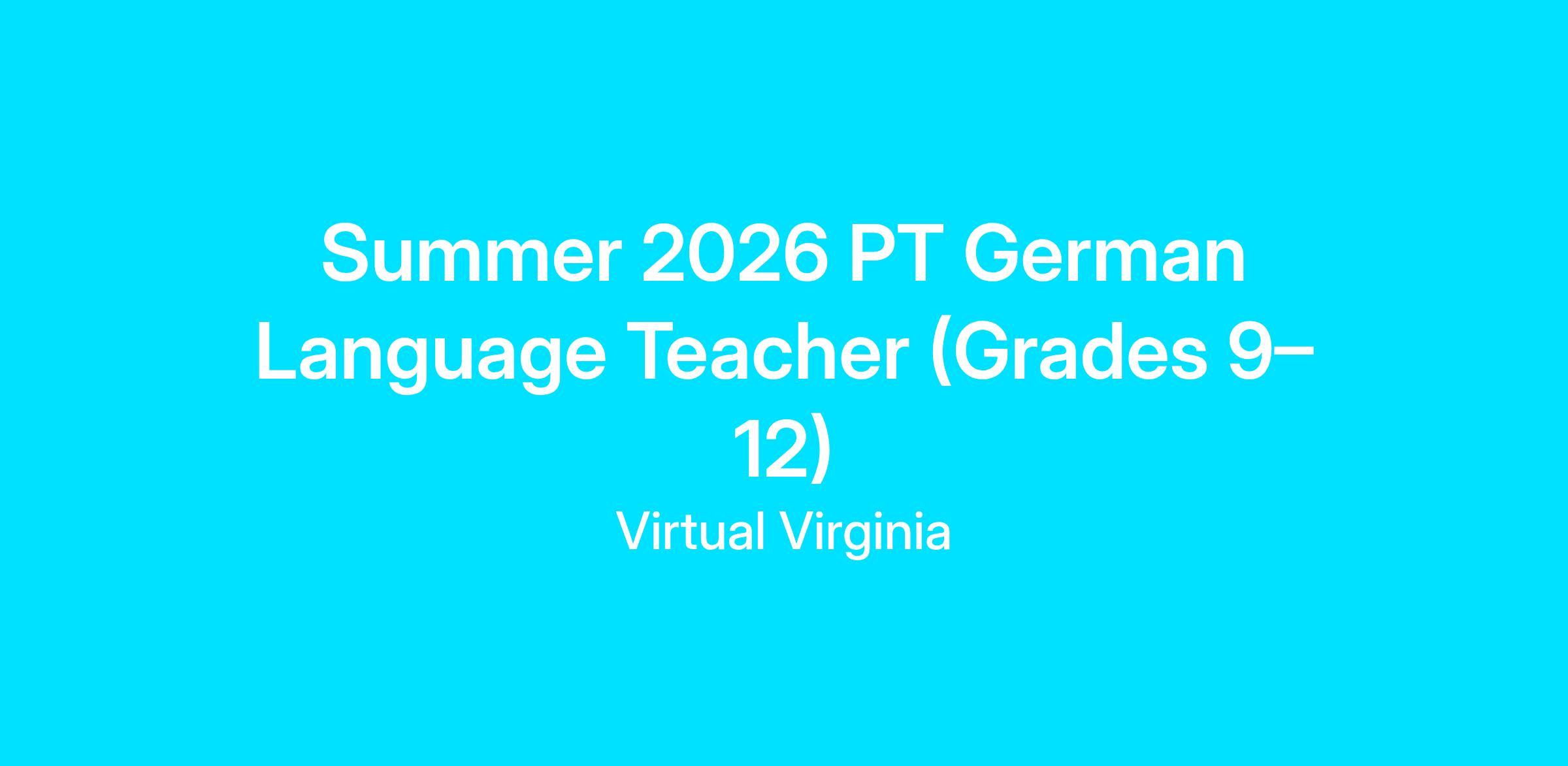 Virtual Virginia (VVA) seeks a Virginia-certified part-time instructor for the summer program. The position requires working with Virtual Virginia course curriculum in the Canvas Learning Management System (LMS), conducting regular synchronous sessions with students, holding regular office hours, and maintaining open communication with parents, schools, students, and VVA administrators. Two support hours must be held between 8 a.m. and 12 p.m. daily, Monday–Friday, including the time dedicated for synchronous instruction.
