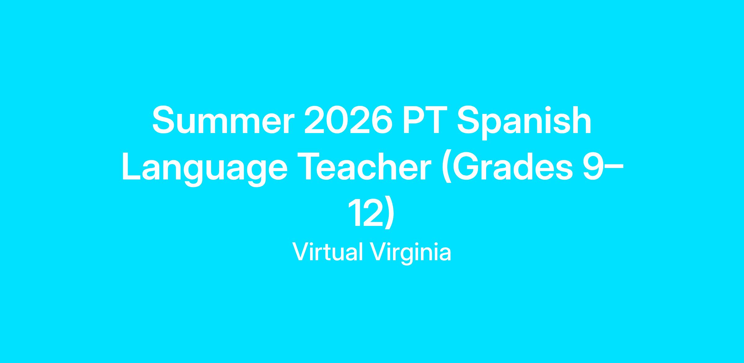 Virtual Virginia (VVA) seeks a Virginia-certified part-time instructor for the summer program. The position requires working with Virtual Virginia course curriculum in the Canvas Learning Management System (LMS), conducting regular synchronous sessions with students, holding regular office hours, and maintaining open communication with parents, schools, students, and VVA administrators. Two support hours must be held between 8 a.m. and 12 p.m. daily, Monday–Friday, including the time dedicated for synchronous instruction.