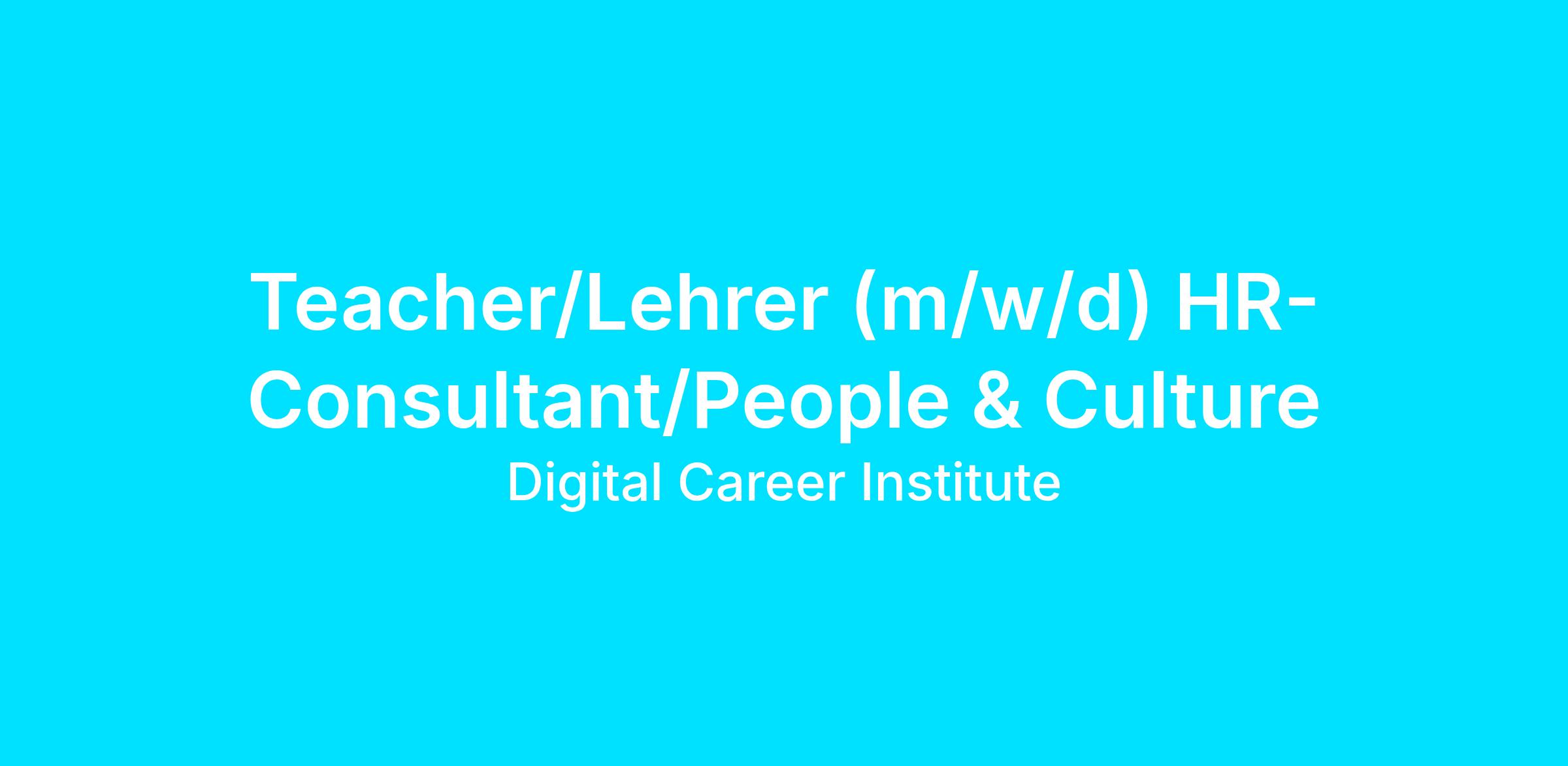 Teacher/Lehrer (m/w/d) HR-Consultant/People & Culture