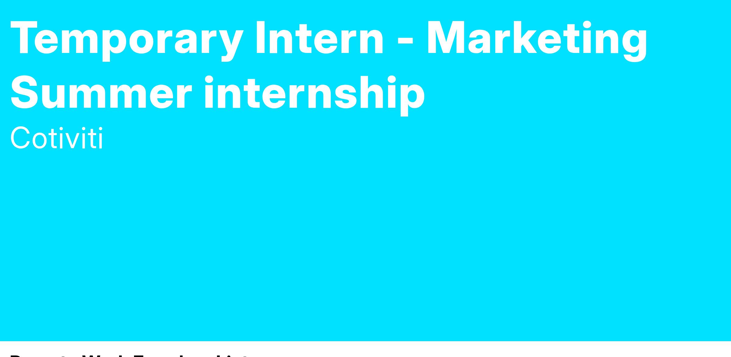 Cotiviti is looking for a motivated and creative Marketing intern to join our dynamic and innovative team for summer 2025, where you can gain valuable experience in the healthcare technology sector. As a Marketing intern, you will have the opportunity to rotate across the different areas of Marketing including: content and