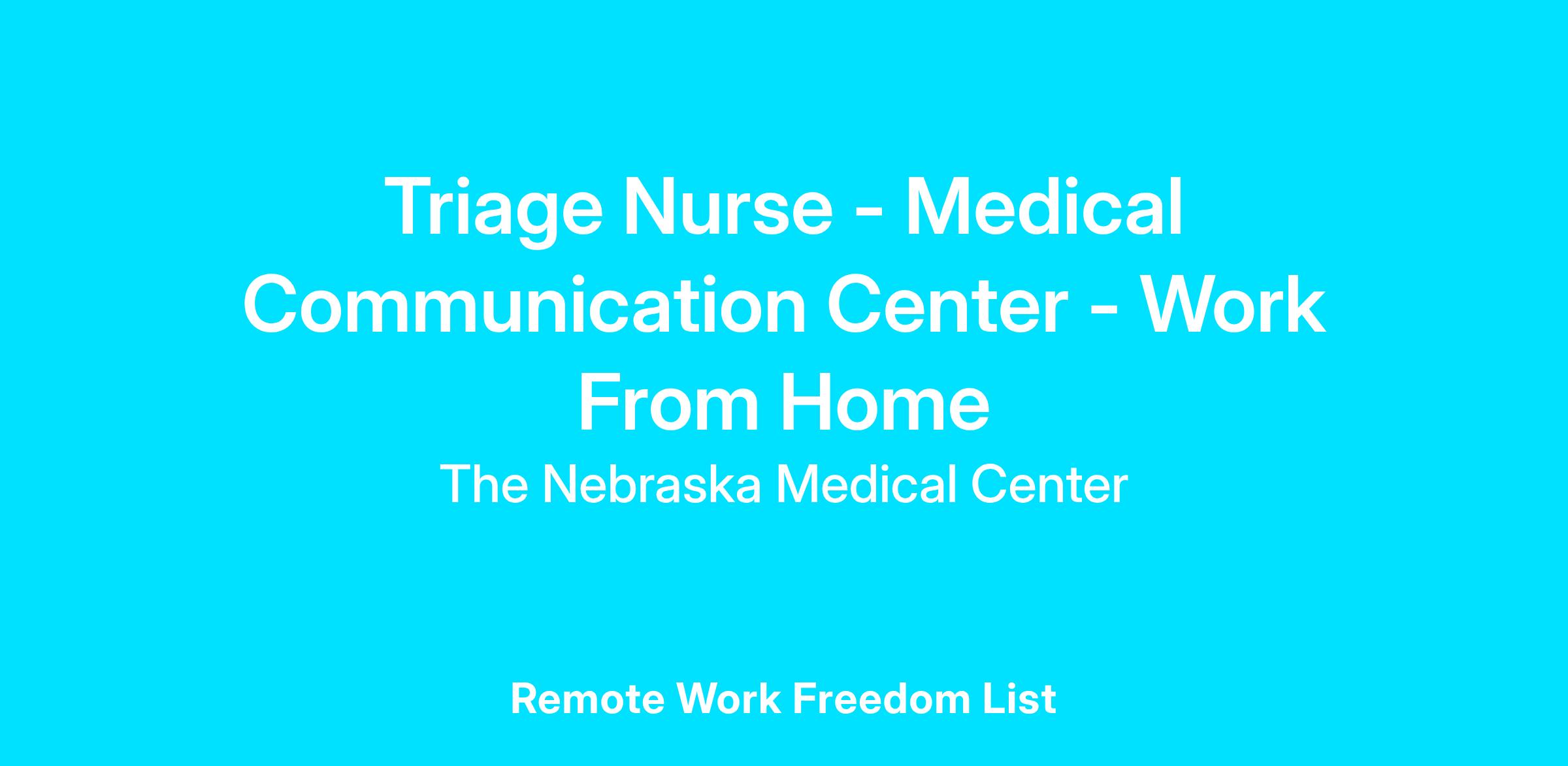 Nebraska Medicine is seeking an experienced Triage RN to join the Medical Communication Team, this role is located in Omaha, NE. This position has the opportunity to be able to work from home after in-office training (6-12 weeks). Orientation consists of first shift/daytime hours (7AM - 5PM). The Triage RN will be responsible for telephone triage, care coordinator, and patient education focused on providing exceptional care through multidisciplinary collaboration.