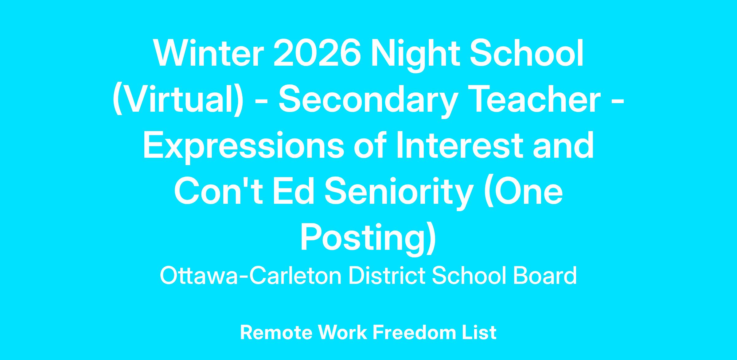 Winter 2026 Night School (Virtual) - Secondary Teacher - Expressions of Interest and Con't Ed Seniority (One Posting)